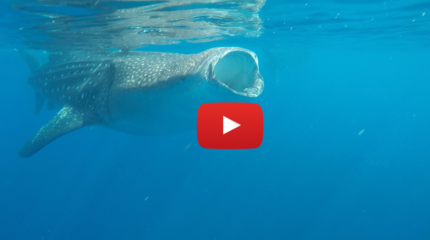 After the one whale shark I had been trailing for a while swam away into the azure distance (they are incredibly fast swimmers), I thought to return to the boat and wait for another shark’s approach from the surface. However, my guide, Fernando, shouted with excitement (you can hear this around the 0:15 mark), exclaiming for me to turn around.