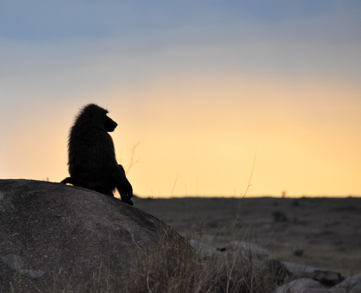 This week we selected a baboon silhouetted against a Serengeti sunset.